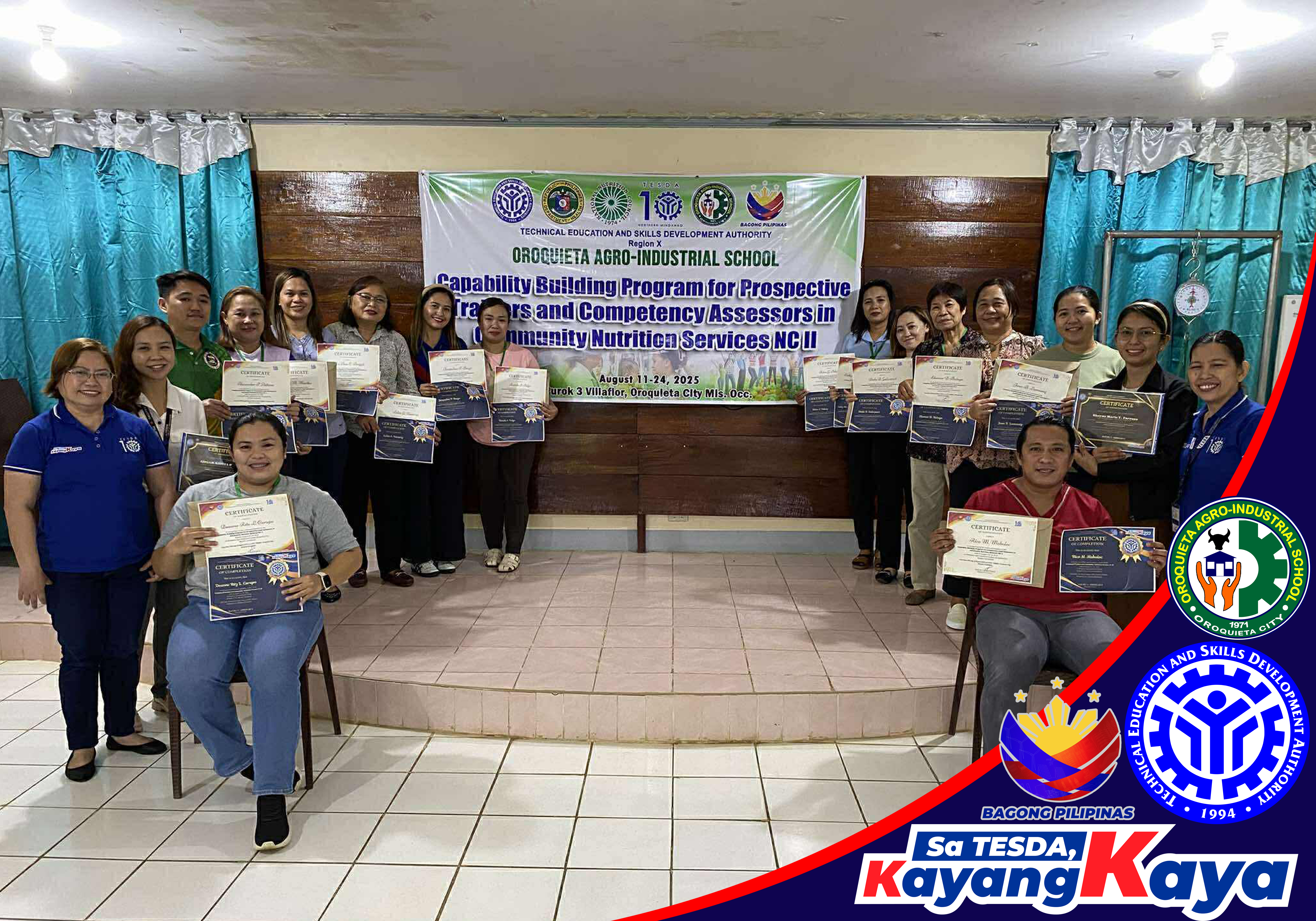 To strengthen the delivery of quality nutrition and programs in the region, The Technical Education and Skills Development Authority (TESDA) - Region X successfully conducted a Capability Building Program for Prospective Trainers and Assessors